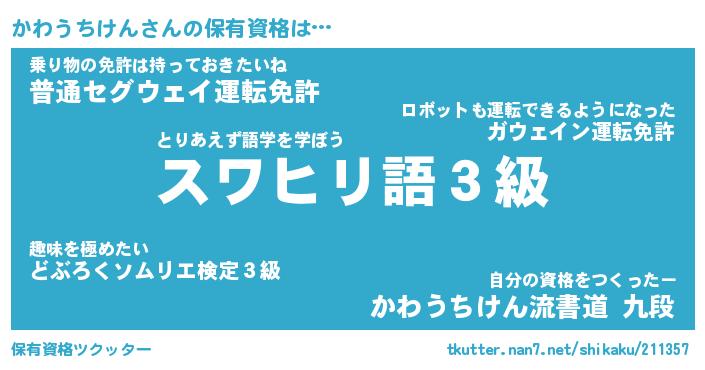 | ヒーロー風カッコイイあだ名 | 『スーパーカワウチケン』『天弓騎士カワ』 |