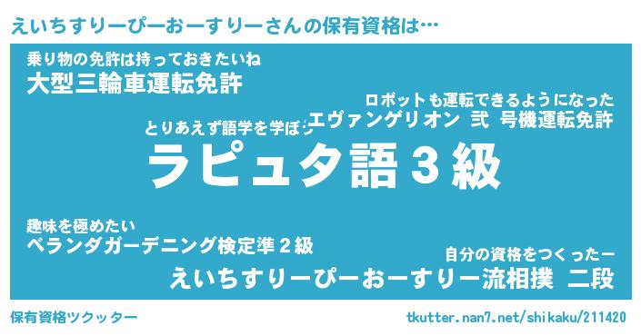 | 料理風あだ名 | 『節約★えいちすりーぴーおーすりーと油揚げの玉子丼』 |