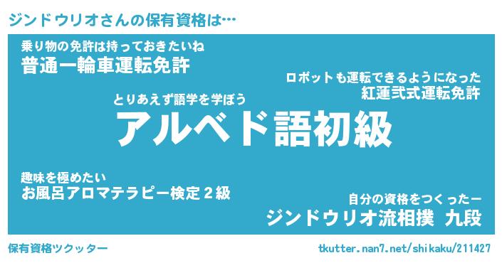 | 料理風あだ名 | 『節約★ジンドウリオと油揚げの玉子丼』 |