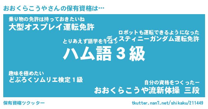| ツイッター | おおくらこうやさんのツイッターID『katatsumuri_idle』 |