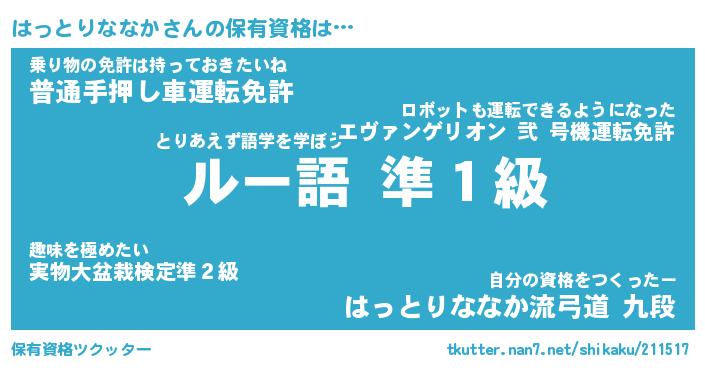 | 男性向けラノベタイトル風あだ名 | 『ハットリナナカアートオンライン』 |