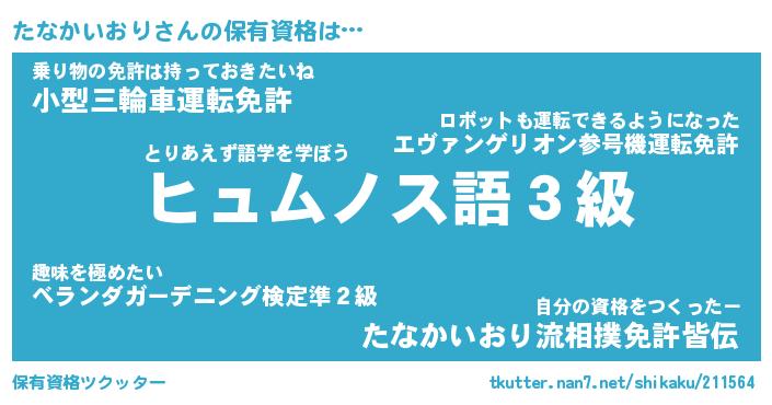 | ヒーロー風カッコイイあだ名 | 『スーパータナカイオリ』『天弓騎士タナ』 |