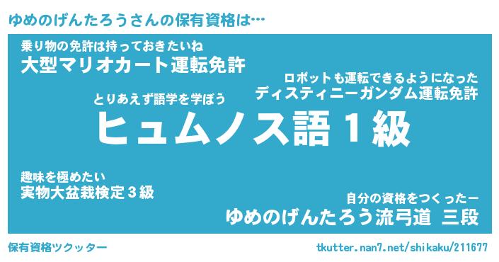 | 男性向けラノベタイトル風あだ名 | 『ユメノゲンタロウアートオンライン』 |