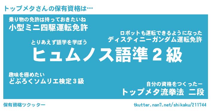 | ヒーロー風カッコイイあだ名 | 『スーパートップメタ』『幻影騎士トッ』 |