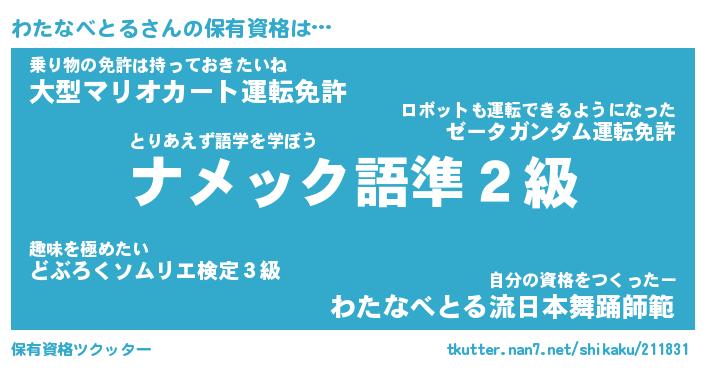 | 男性向けラノベタイトル風あだ名 | 『わたなべとるの憂鬱』 |