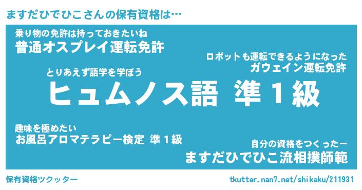 | 女子向けラノベタイトル風あだ名 | 『誰かこのますだひでひこを説明してください! ~契約から始まるウェディング~』 |