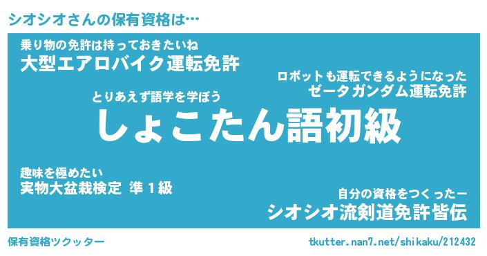 | ヒーロー風カッコイイあだ名 | 『スーパーシオシオ』『黄金騎士シオ』 |