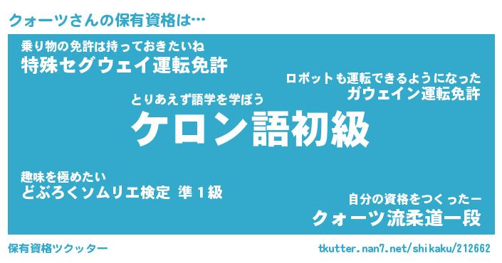| ファンタジー風あだ名 | 『クォフェル』『エターナルクォーツー』 |