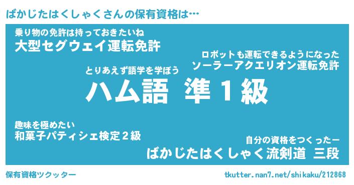 | ツイッター | ばかじたはくしゃくさんのツイッターID『katatsumuri_idle』 |
