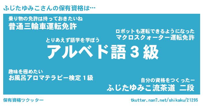 | 肩書あだ名 | 『ふじたゆみこ店長』『ふじたゆみこ団長』 |