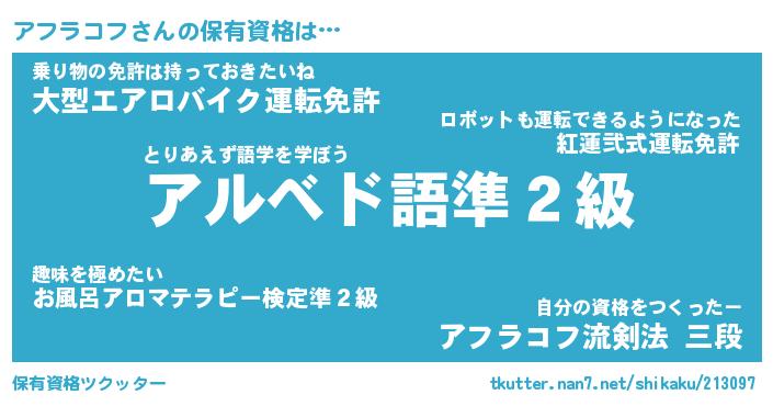 | ヒーロー風カッコイイあだ名 | 『スーパーアフラコフ』『幻影騎士アフ』 |