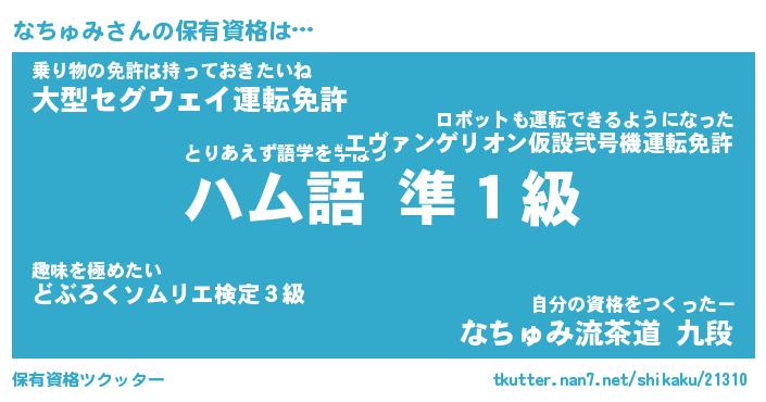 | 肩書あだ名 | 『なちゅみ社長令嬢』『なちゅみ総理大臣』 |