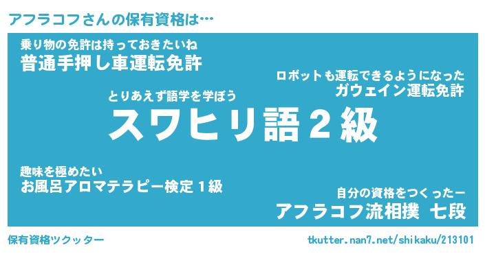 | ヒーロー風カッコイイあだ名 | 『スーパーアフラコフ』『幻影騎士アフ』 |