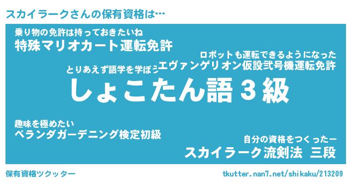 | ヒーロー風カッコイイあだ名 | 『スーパースカイラーク』『魔戒騎士スカ』 |
