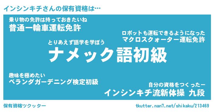 | ヒーロー風カッコイイあだ名 | 『スーパーインシンキチ』『魔戒騎士イン』 |