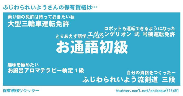 | 伝説のあだ名 | 『伝説のスナイパーふじわられいよう』 |
