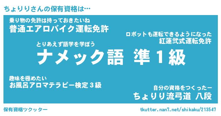 | ファンタジー風あだ名 | 『チョフェル』『エターナルチョリリー』 |