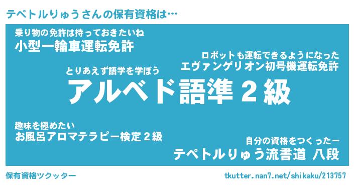 | 料理風あだ名 | 『節約★テペトルりゅうと油揚げの玉子丼』 |