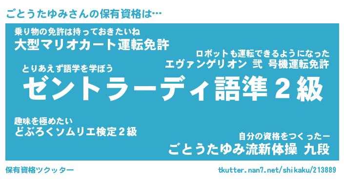 | ヒーロー風カッコイイあだ名 | 『スーパーゴトウタユミ』『天弓騎士ゴト』 |