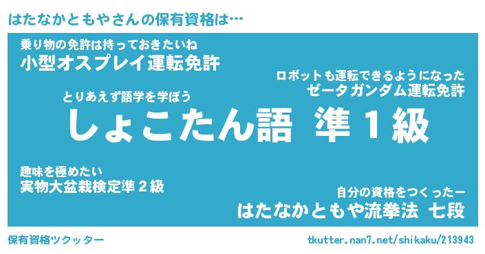 | 伝説のあだ名 | 『封印されし傭兵はたなかともや』 |