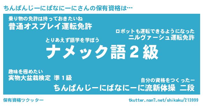 | 男性向けラノベタイトル風あだ名 | 『ちんぱんじーにばなにーにの憂鬱』 |