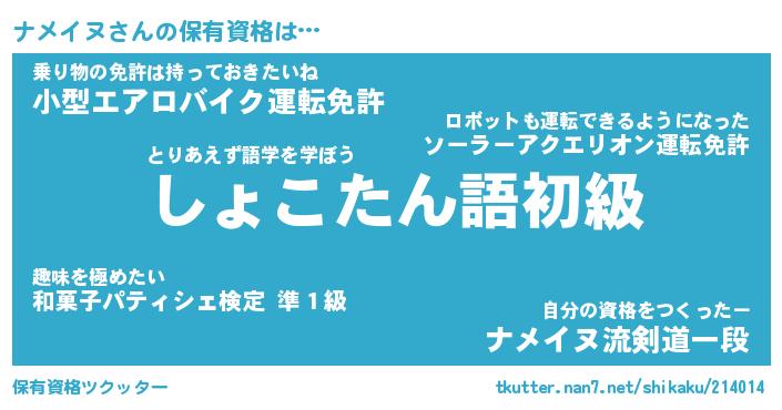| ヒーロー風カッコイイあだ名 | 『スーパーナメイヌ』『天弓騎士ナメ』 |
