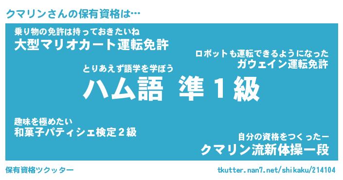 | ファンタジー風あだ名 | 『クマフェル』『エターナルクマリンー』 |