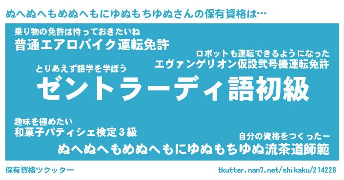 | 料理風あだ名 | 『節約★ぬへぬへもめぬへもにゆぬもちゆぬと油揚げの玉子丼』 |
