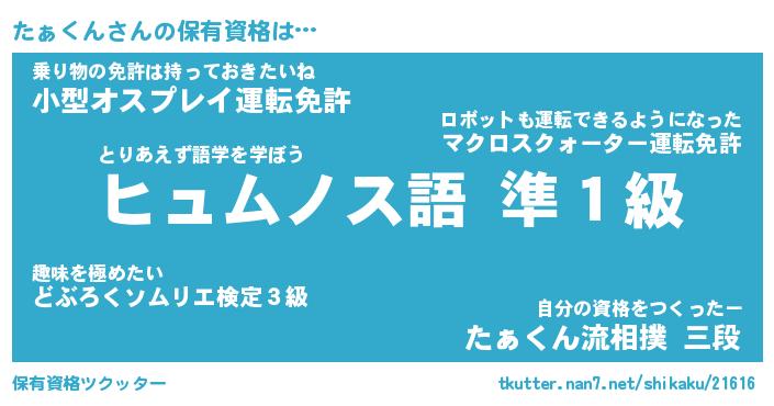 | ヒーロー風カッコイイあだ名 | 『スーパータァクン』『幻影騎士タァ』 |