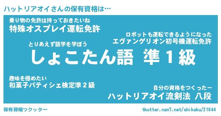 | 伝説のあだ名 | 『封印されし傭兵ハットリアオイ』 |