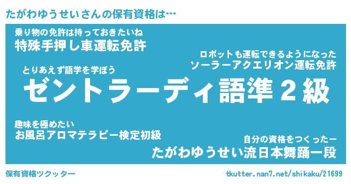 | 肩書あだ名 | 『たがわゆうせい御曹司』 |