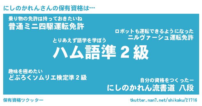 | ヒーロー風カッコイイあだ名 | 『スーパーニシノカレン』『天弓騎士ニシ』 |