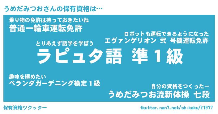 | ツイッター | うめだみつおさんのツイッターID『katatsumuri_kun』 |