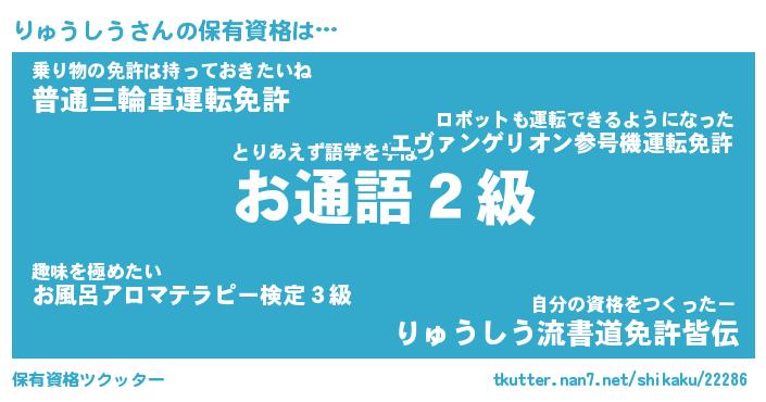| ファンタジー風あだ名 | 『リュフェル』『エターナルリュウシウー』 |