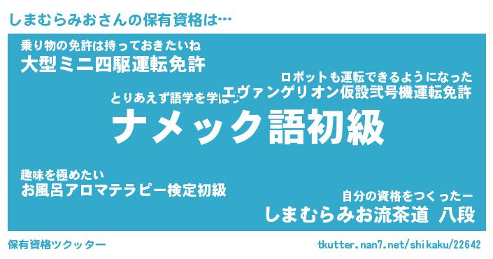 | ヒーロー風カッコイイあだ名 | 『スーパーシマムラミオ』『天弓騎士シマ』 |
