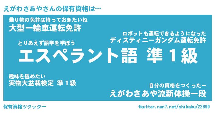 | 伝説のあだ名 | 『伝説の傭兵えがわさあや』 |