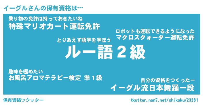 | ファンタジー風あだ名 | 『イーフェル』『エターナルイーグルー』 |