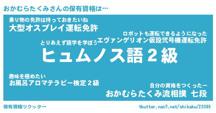 | 伝説のあだ名 | 『封印されし竜騎士おかむらたくみ』 |