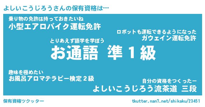 | 男性向けラノベタイトル風あだ名 | 『よしいこうじろうの憂鬱』 |