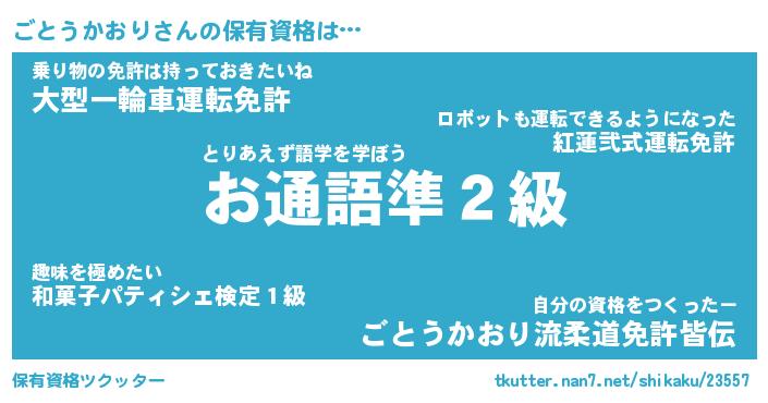 | ヒーロー風カッコイイあだ名 | 『スーパーゴトウカオリ』『銀牙騎士ゴト』 |