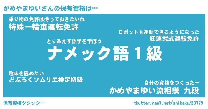 | ヒーロー風カッコイイあだ名 | 『スーパーカメヤマユイ』『魔戒騎士カメ』 |