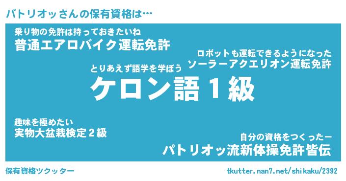 | 男性向けラノベタイトル風あだ名 | 『パトリオッの憂鬱』 |