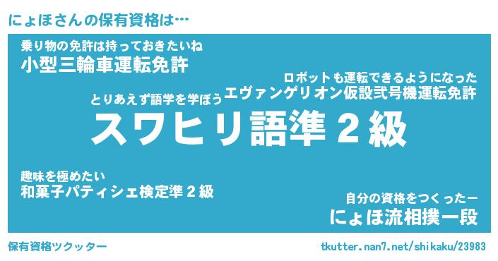 | ファンタジー風あだ名 | 『ニョフェル』『エターナルニョホー』 |