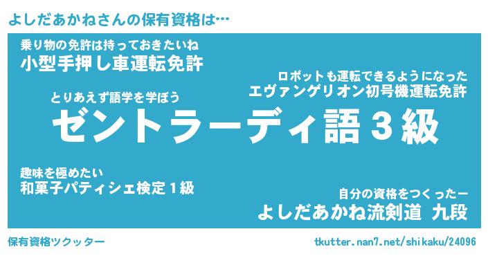 | ヒーロー風カッコイイあだ名 | 『スーパーヨシダアカネ』『魔戒騎士ヨシ』 |