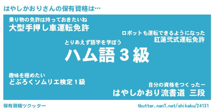 | 男性向けラノベタイトル風あだ名 | 『ハヤシカオリアートオンライン』 |