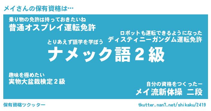 | 2回繰り返すあだ名 | 『メイメイ』『メメイイ』『ぬらぬら』 |