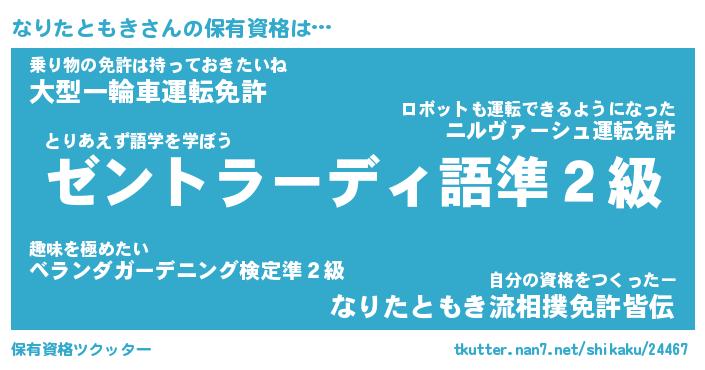 | ヒーロー風カッコイイあだ名 | 『スーパーナリタトモキ』『炎刃騎士ナリ』 |