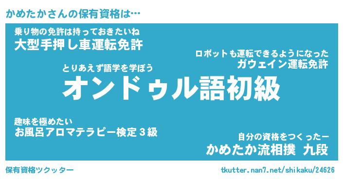 | ファンタジー風あだ名 | 『カメフェル』『エターナルカメタカー』 |