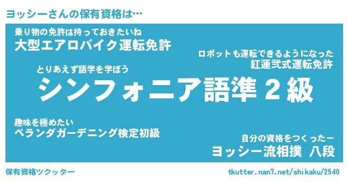 | ヒーロー風カッコイイあだ名 | 『スーパーヨッシー』『天弓騎士ヨッ』 |