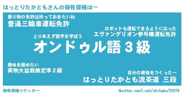 | 伝説のあだ名 | 『封印されし傭兵はっとりたかとも』 |